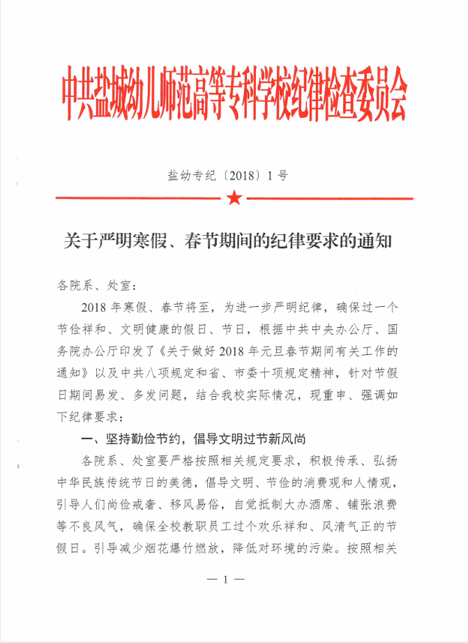 关于严明寒假、春节期间的纪律要求的通知